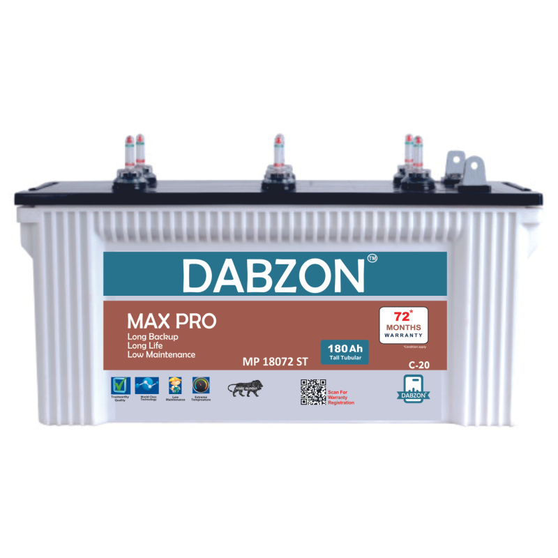 Dabzon Max Pro 180Ah Short Tubular Inverter Battery for Home, Office & Shops | MP18072ST | 72 Month Warranty