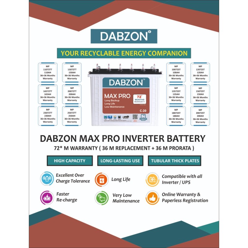 Dabzon Brand stands out in the battery industry for its commitment to customer convenience and satisfaction. With our easy online registration facility, customers no longer have to worry about locating their bill and warranty card when claiming warranty, a common issue that often results in missed warranty opportunities with other brands. At Dabzon, we understand the importance of timely service, which is why we guarantee replacement batteries within Seven working days, a promise unmatched by any other brand in the industry. Our dedication to streamlining the warranty process and ensuring swift replacements sets us apart and reinforces our position as a leader in the battery market.